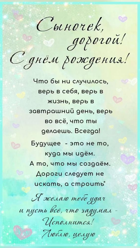 Не бойтесь быть сентиментальной. Не бойтесь, что ваши слова просты. Простота и искренность – это ваши главные козыри. Это день, когда можно и нужно быть трогательной. Ваши слова, сказанные от сердца, – это самый ценный подарок, который ваш сын получит в этот день, даже если осознает это намного позже.