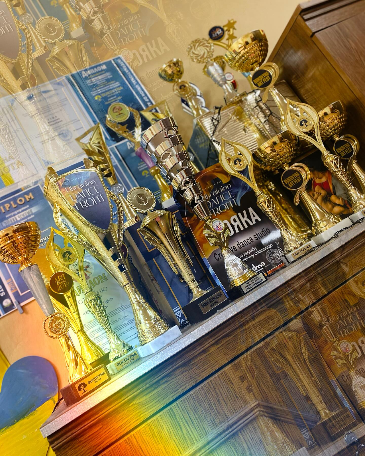 Все коллективы принимают участие в различных соревнованиях, устраивают выставки своих картин, певческие выступления, танцевальные батлы, флешмобы, например, ко Дню вышиванки. Их стены сверкают дипломами, грамотами, медалями и кубками. У вас может рябить в глазах от такого количества золота.