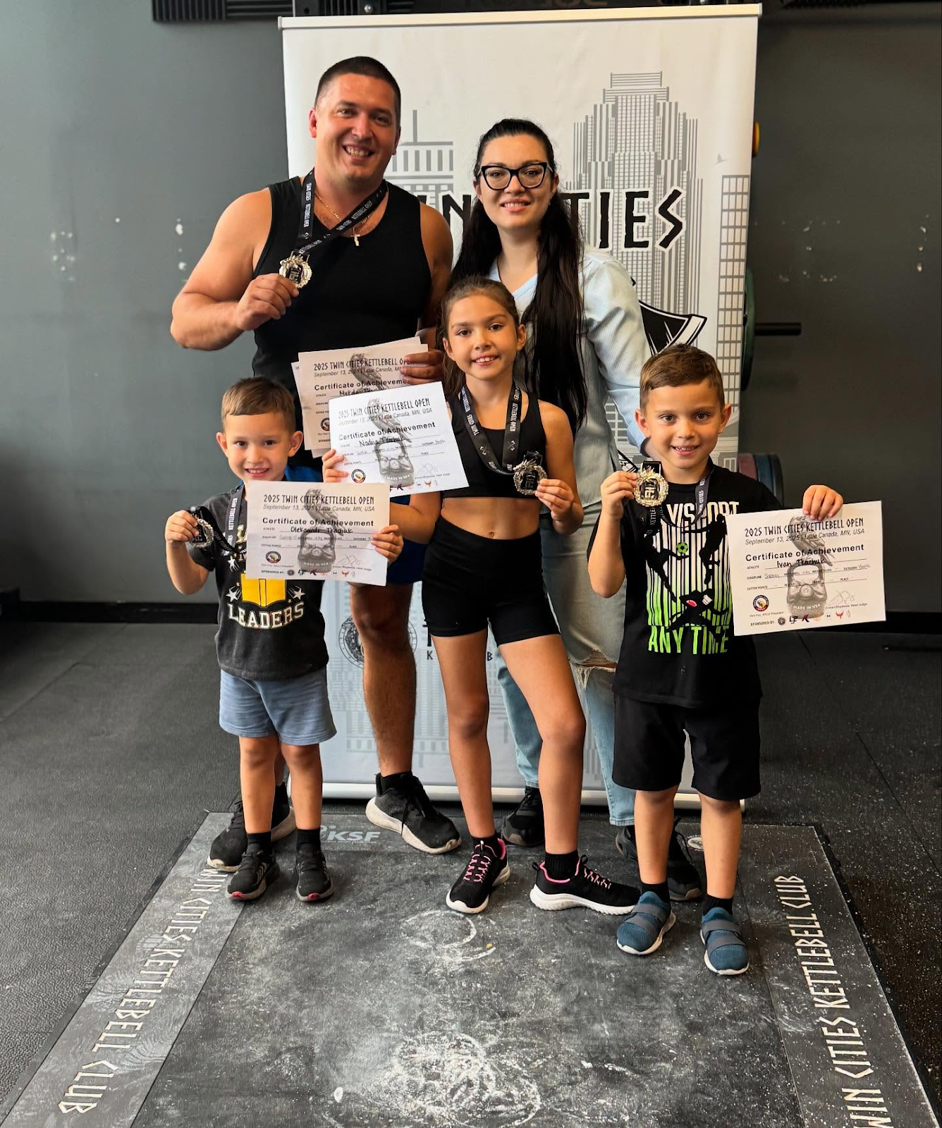 Семья для него – самая ценная опора. Жена и дети – первые, кто поздравляет его с победами. На чемпионате Северной Америки в Миннеаполисе его дети показали отличные результаты: 3-летний Саша сделал 61 подъем гири 2,5 кг за 10 мин, 5-летний Ваня – 243 подъема, 7-летняя Надя – 250 подъемов.